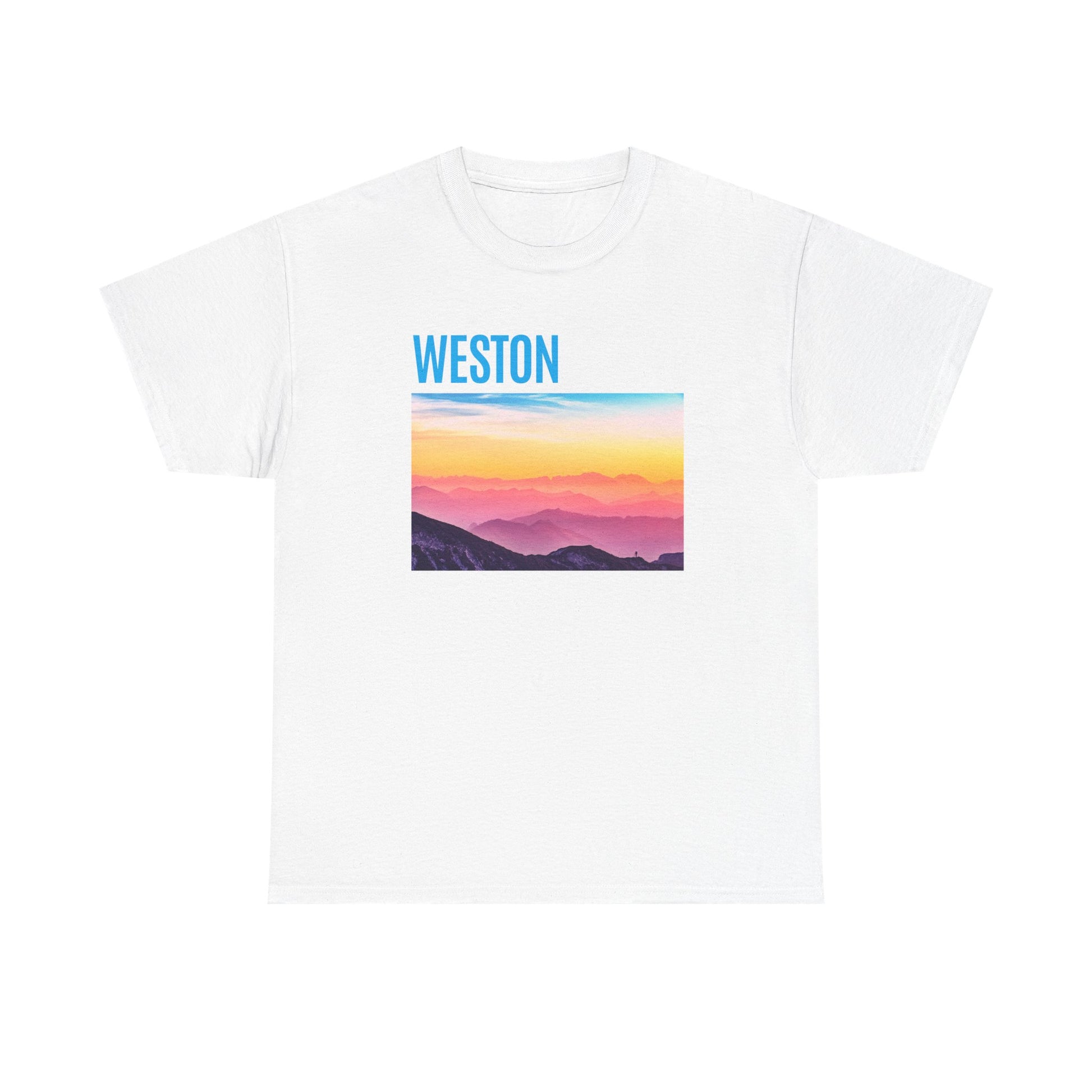 Weston Sunset Unisex Heavy Cotton Tee | Casual Wear, Graphic T-Shirt, Gift for Nature Lovers, Summer Vibes, Outdoor Adventure